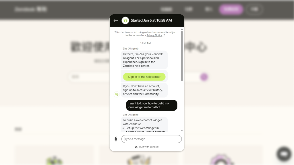 顧客能在與網頁聊天機器人的互動中獲得知識庫提供的答案或相關文章。